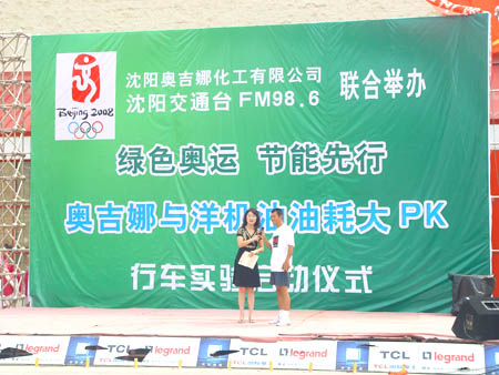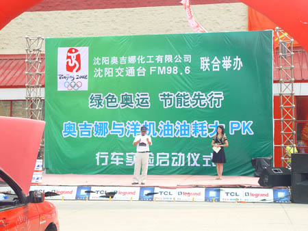 奧運倒計時一周年之際,由沈陽奧吉娜化工有限公司與沈陽交通臺聯合舉辦的“綠色奧運、節能先行,奧吉娜與洋機油萬里油耗大PK”行車實驗拉開了序幕,2007的8月24日上午,舉行了啟動儀式。